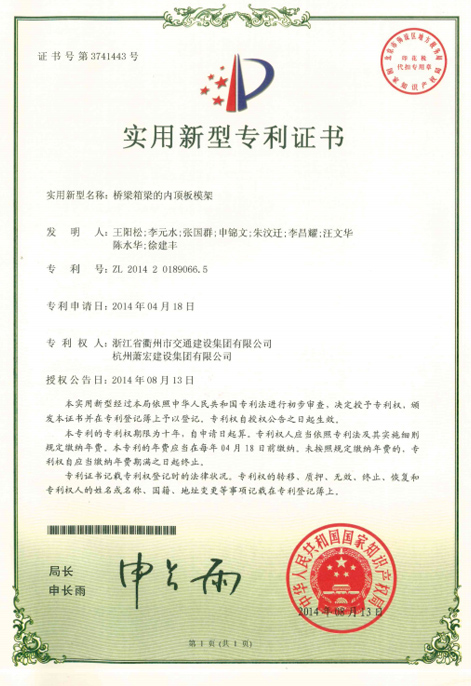 用于支承箱梁的初始塊模板的支架及初始塊施工方法發(fā)明專利證書